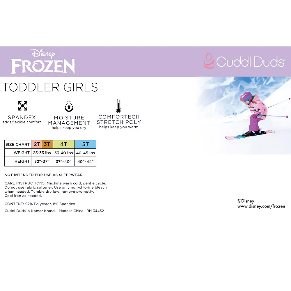This Cuddl Duds baselayer set keeps her adorable all the time with Disney’s Frozen graphics. © Disney