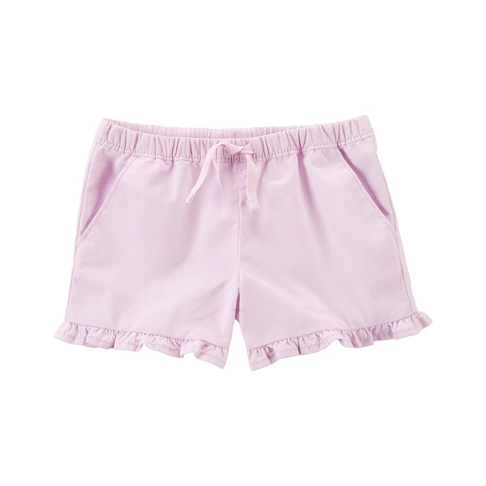 Give her wardrobe and instant upgrade with these Toddler Girl Carter’s Pull-On Ruffle Shorts.
