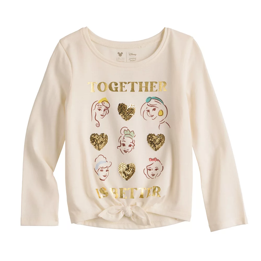 Add a little sparkle and shine to her wardrobe with this embellished toddler girls’ Disney Princesses tie front graphic tee from Jumping Beans. ©Disney