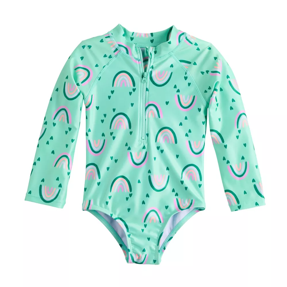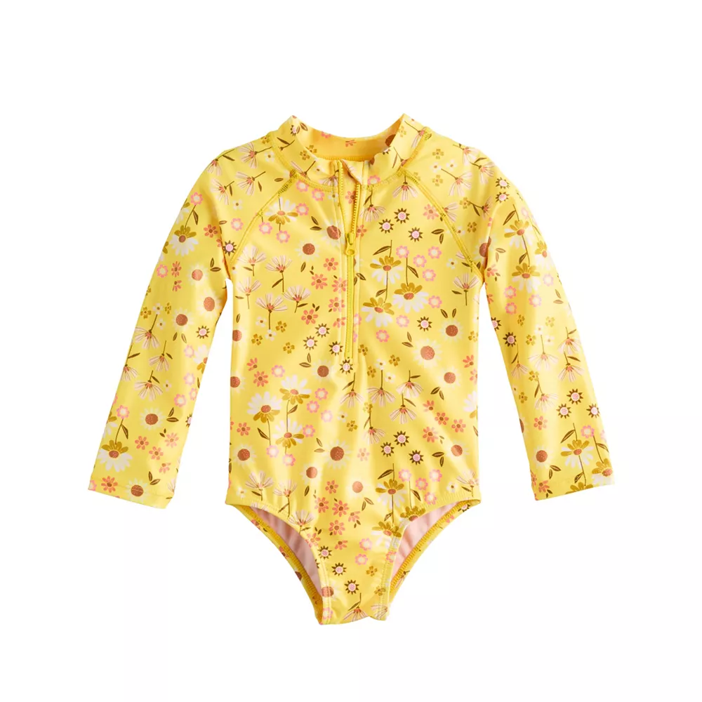 She’ll be protected from the sun and ready for beach day in this toddler girls’ one-piece long sleeve swimsuit from Jumping Beans.