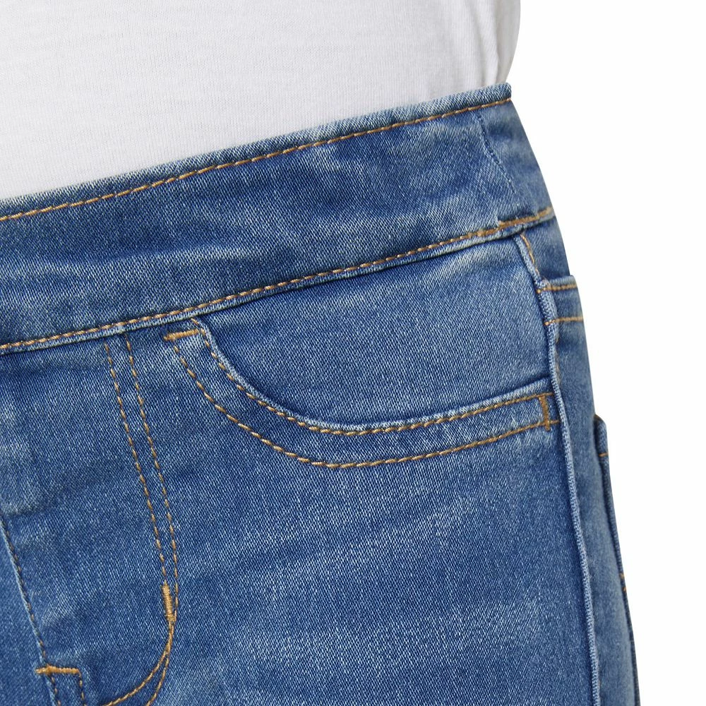 - soft and stretchy sateen fabric; skinny fit; 2 mock front pockets; 2 back pockets with arcuate stitching; inner adjustable waistband; covered elastic waistband
