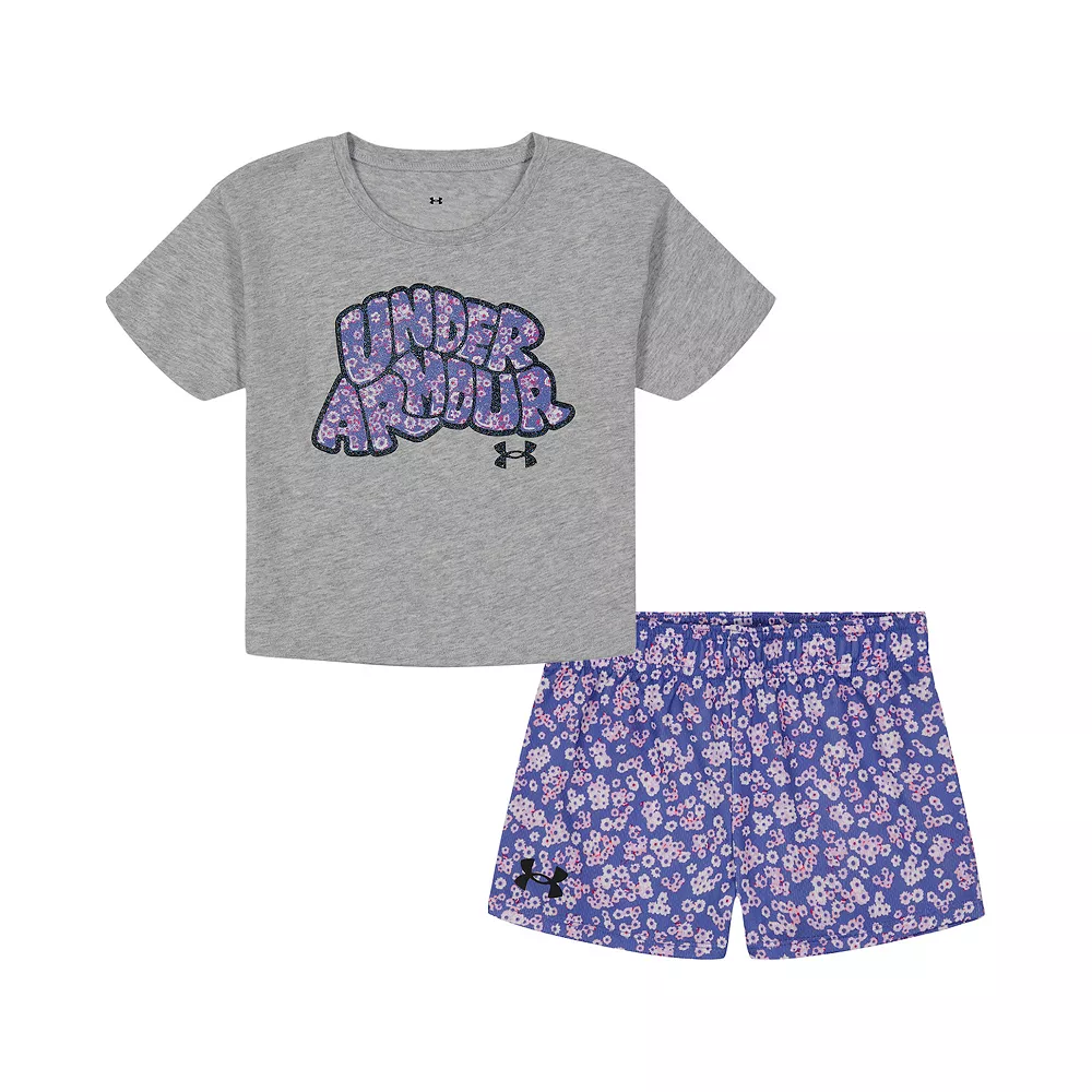 Give her a sporty look with this Toddler Girl Under Armour Daisy Day Logo Tee & Shorts Set.